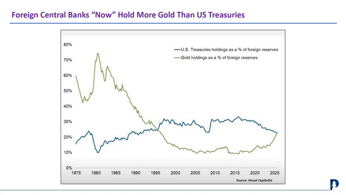 The old system relied on global surpluses flowing into US Treasuries under US hegemony. Sanctioning Russian FX reserves in 2022 shattered trust, prompting central banks to cut Treasury exposure and turn to gold. Gold has overtaken US Treasuries as a share of global FX reserves. This marks a structural and lasting shift in the global monetary system.