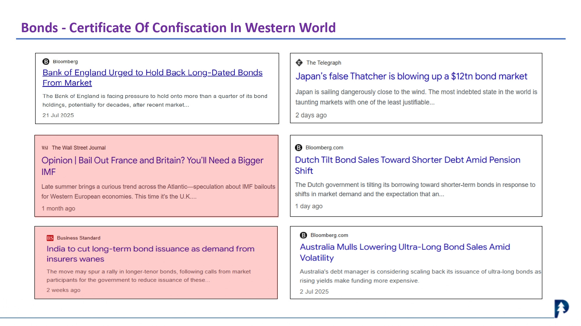 Most G7 economies share the same issues of high debt and weakened industry. Government bonds now guarantee real losses, effectively acting as “certificates of confiscation.”