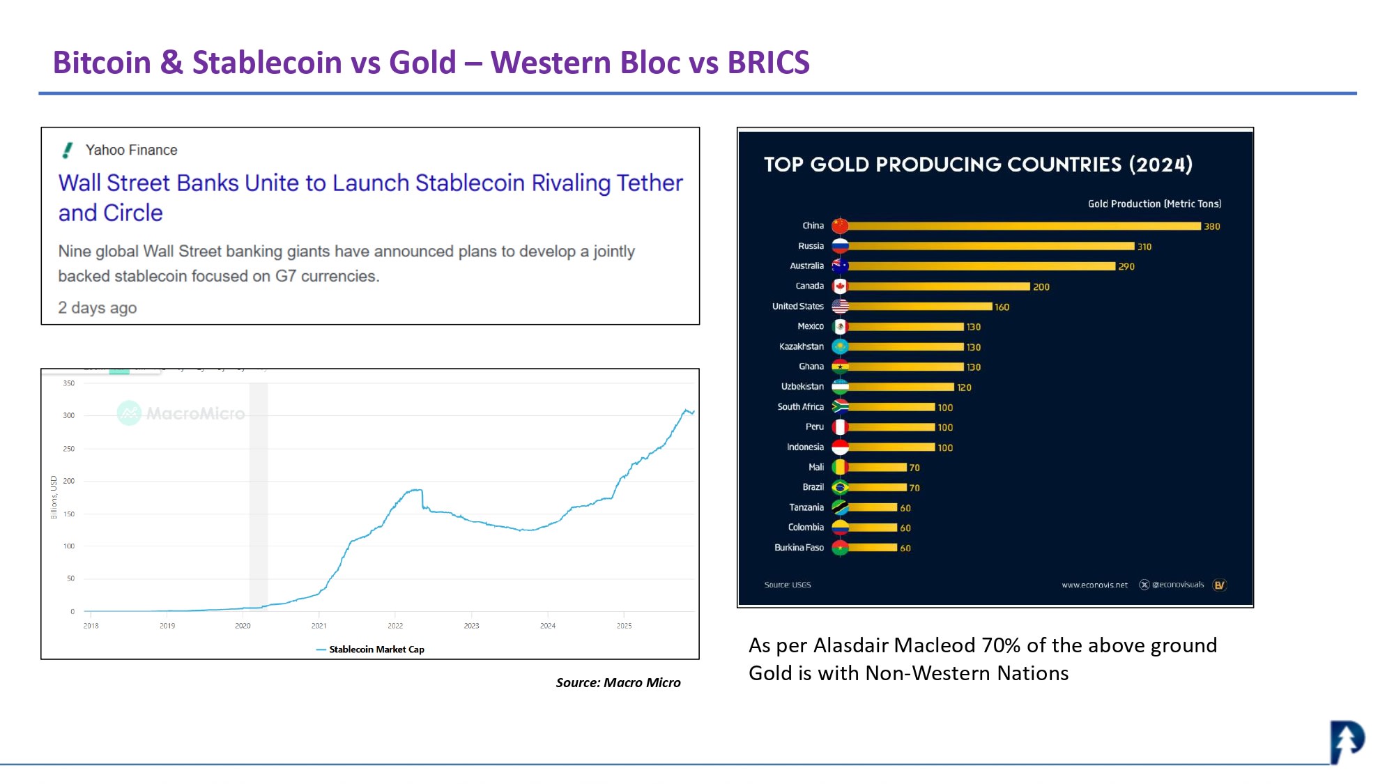 A China-led system is reintroducing gold into trade settlement, while the US is attempting to sustain Treasury demand through stablecoins. The world is fragmenting into parallel monetary blocs.