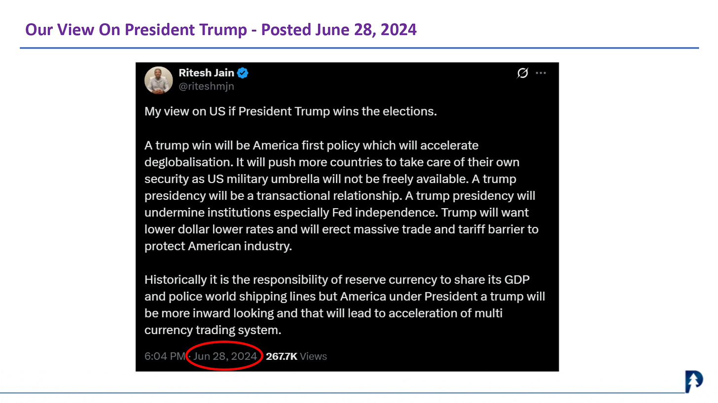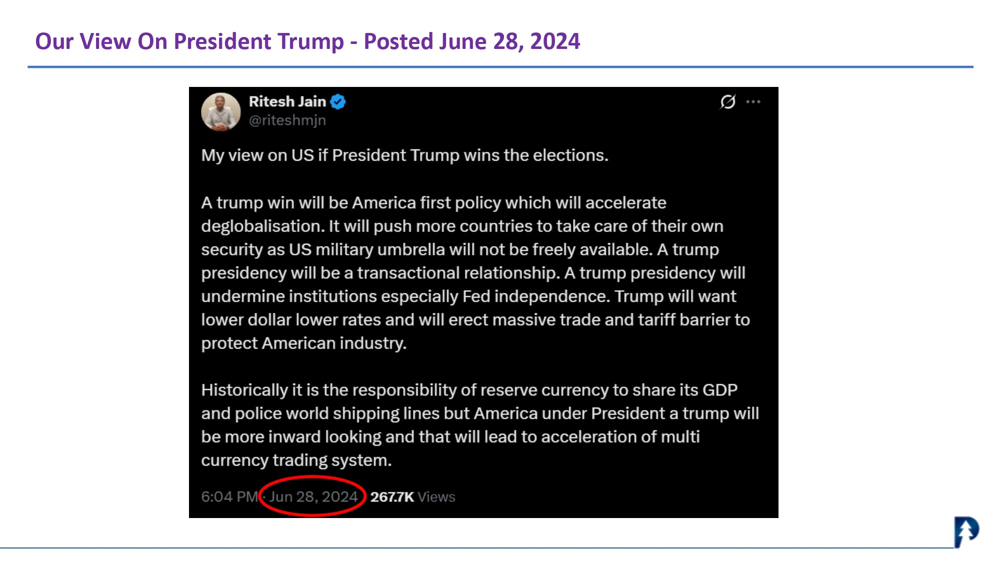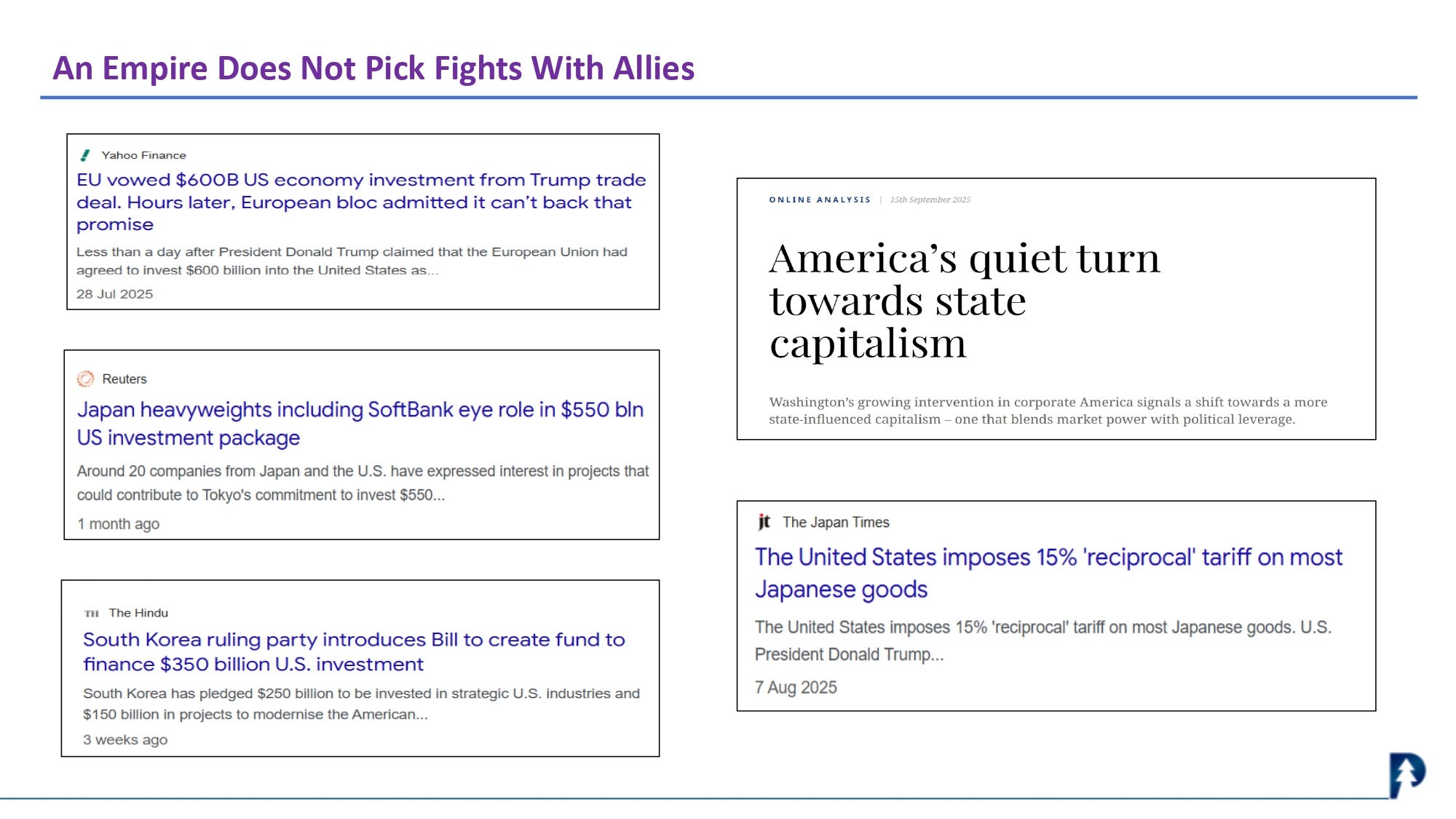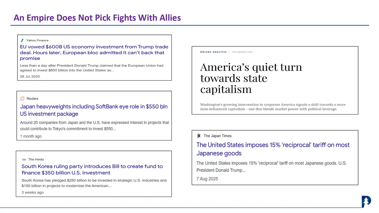 Even before the election, Trump’s economic stance was clearly anti-globalization and “America First,” favoring tariffs and trade barriers. This inward turn was structurally inevitable for the US; the difference under another president would have been a quieter, less confrontational execution but the outcome would have not changed one bit.