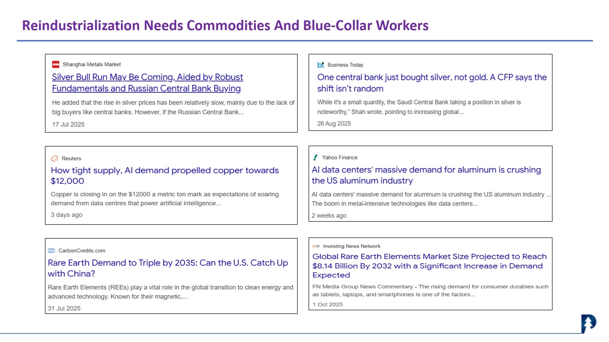 Central banks are accumulating gold and silver, while electrification drives demand for copper and aluminum. Rare earths have become a critical geopolitical battleground.