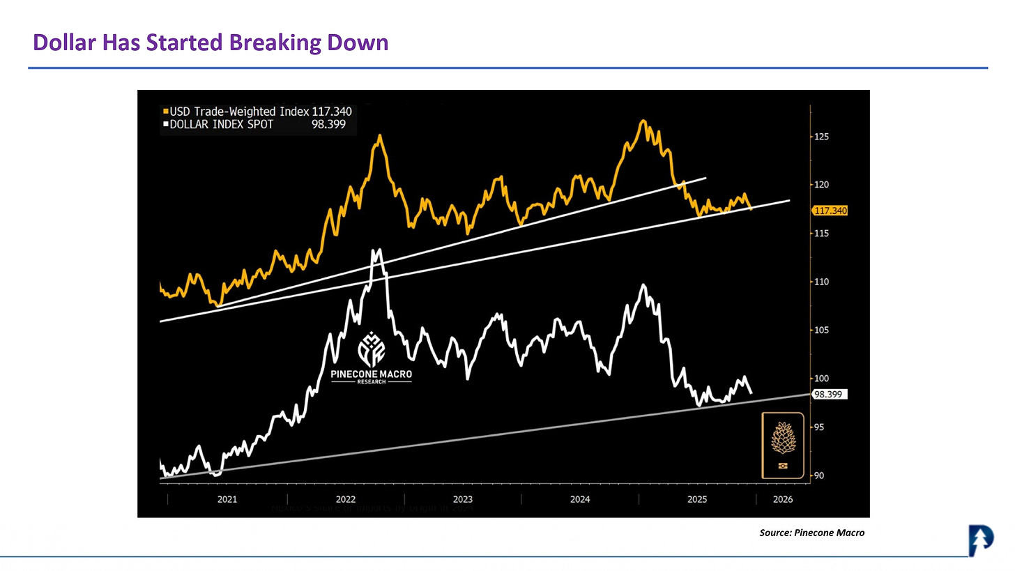 Financial repression combined with re-industrialization naturally weakens the dollar. Early signs of a structural trend break are already visible.