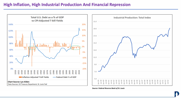 The chart says it all. Last time the US had debt at 130% of GDP, they used exactly this tool. Bond holders lost real wealth for a decade. Real asset owners did not.