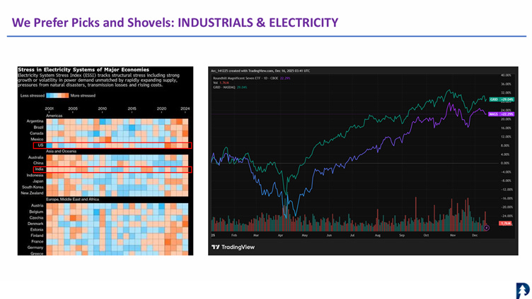 Our view: Electrification has been our macro theme of the decade. AI has just accelerated it. We don’t care which AI model wins, every single one needs copper, uranium, and a functioning grid. Picks and shovels, not the gold rush.