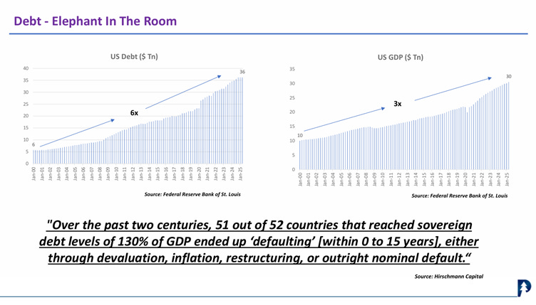 US debt has gone 6x in 25 years. GDP has gone 3x. That gap is the entire argument.