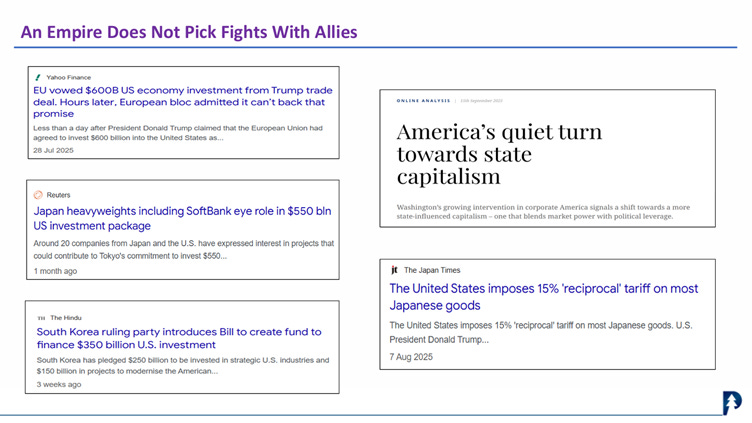 Our View: Empires don’t pick fights with their own allies. The US is threatening Canada, imposing tariffs on Japan, and abandoning NATO partners it has protected for 50 years. US is retreating.